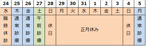 また12月24日(水)が臨時休診となります。ご注意ください。